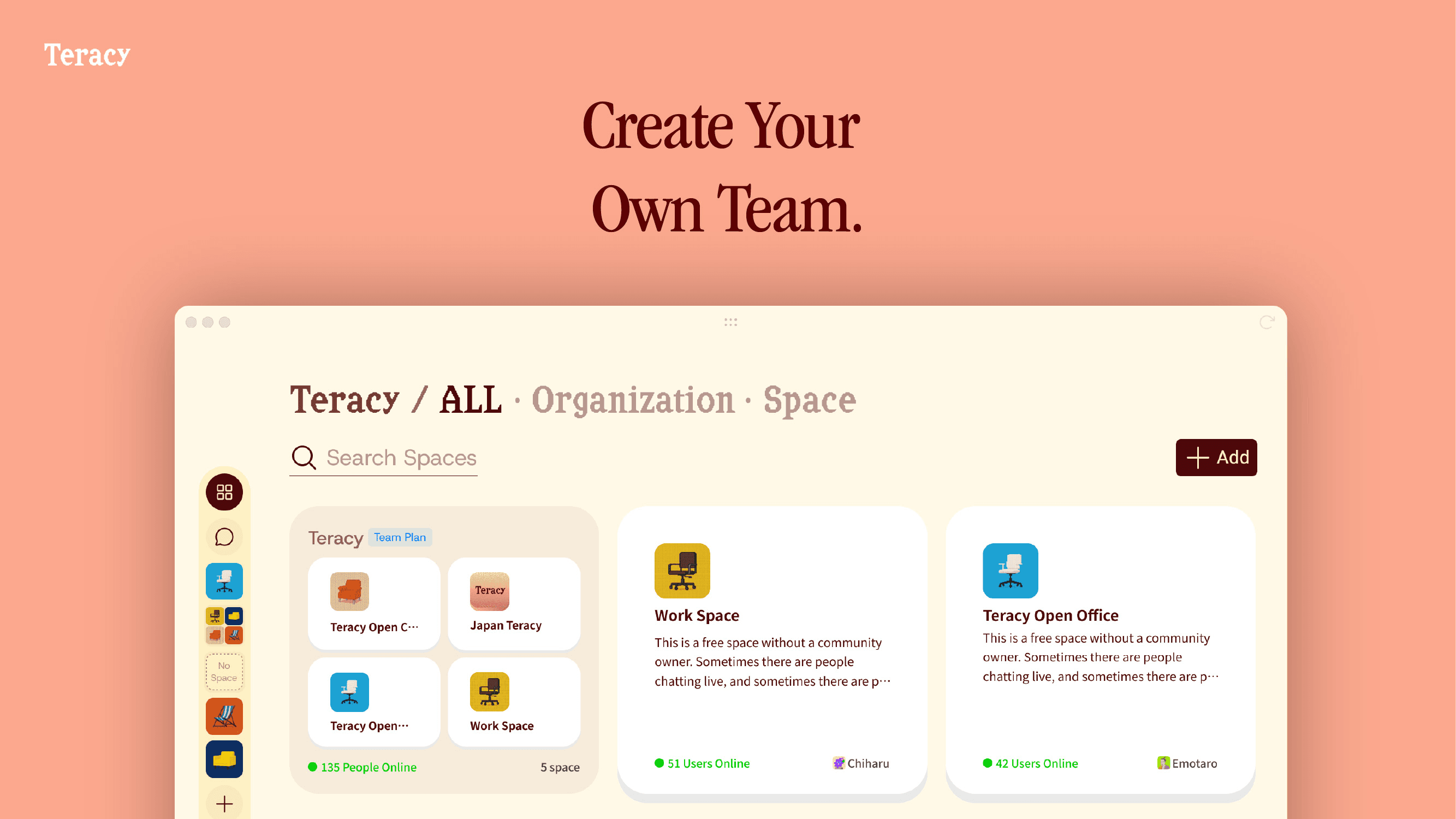Just click a shared space URL to jump straight into Teracy.