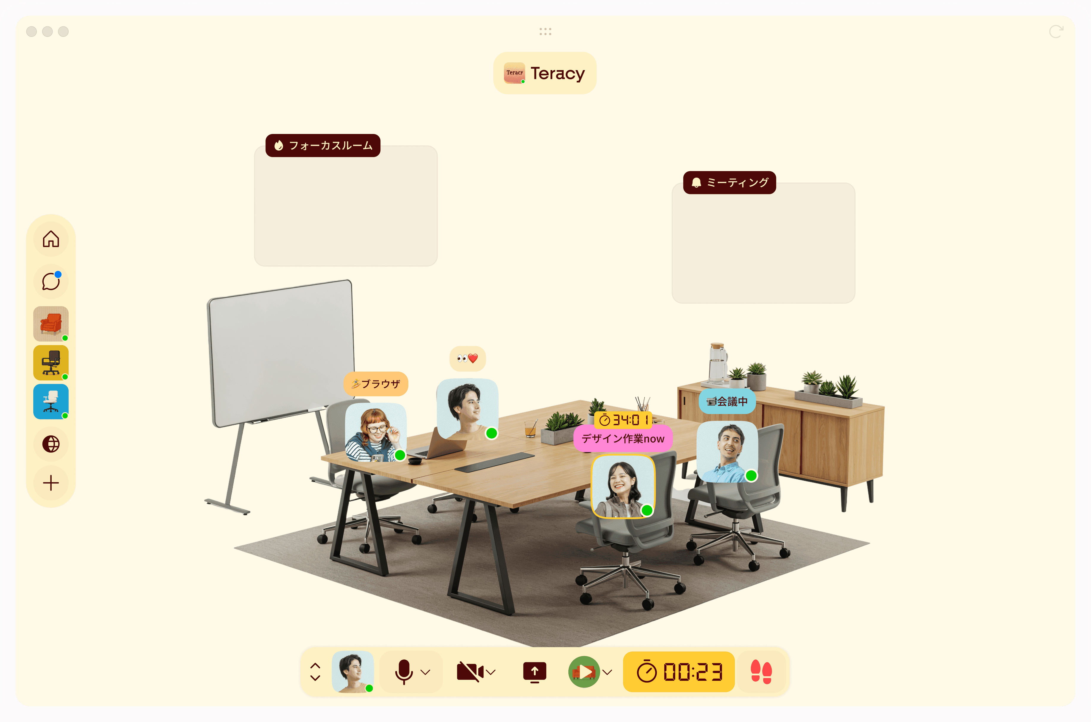 コミュニケーションには「空間・境界・道具・ルール」の要素があると思う。その中でもTeracyは特に、空間と境界が自然と意識できるのがいい。